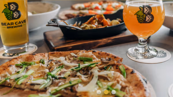 Bear Cave opened in May 2022 with a bold lineup of beers, stone-fired pizzas, and a unique service model that set it apart from any other brewpub in the region.